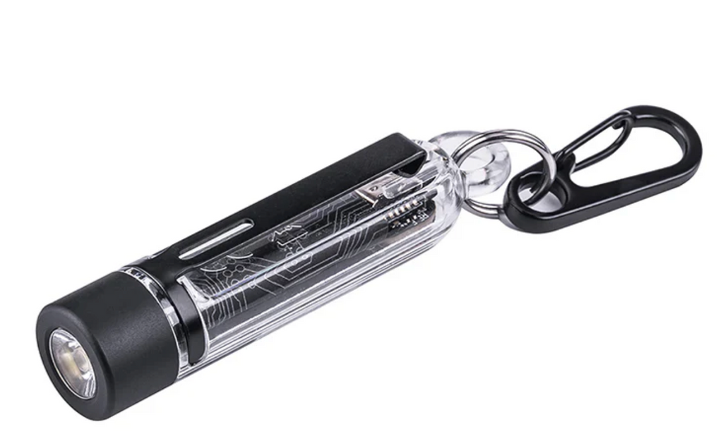 The NEXTORCH K40 stands out as a remarkably small, multi-functional keychain light for everyday carry. Despite its size, it packs a powerful punch with a maximum white light output of 700 lumens and a beam distance of 78 meters. The K40 offers three brightness levels for white light, as well as strobe, red, blue, and UV light modes for versatility. It has independent switches for mode selection and is equipped with a built-in 180 mAh rechargeable battery and USB-C charging port, offering convenience and readiness on the go. The side clip also makes it a quick conversion to a hat light.